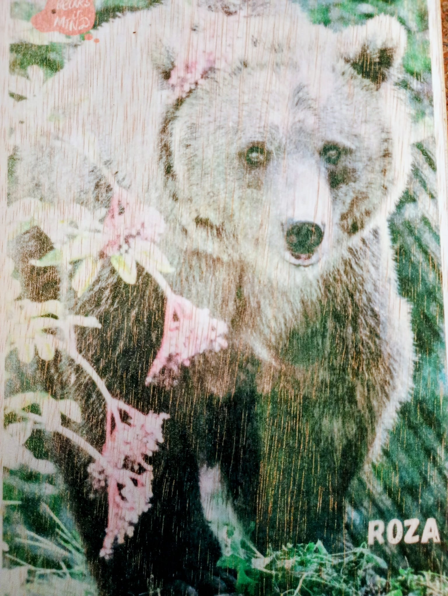 De foto is direct op het hout gedrukt, waardoor de nerfstructuur mooi zichtbaar blijft en iedere plaat een uniek karakter krijgt. Perfect als decoratie en als speciaal aandenken aan onze beren.