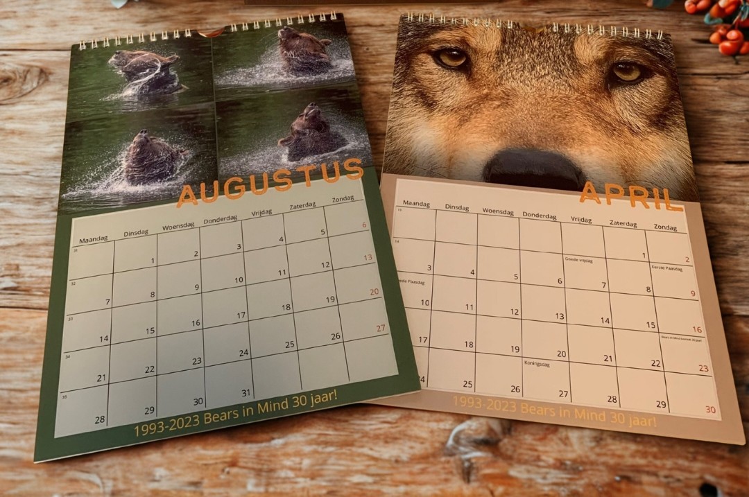 Ontdek onze prachtige A4-formaat Bears in Mind nieuwe jaarkalender 2026, vol met foto’s van alle beren in Het Berenbos.